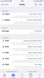 GedView acts as a way to quickly check up on family relationships, dates/locations of events, sources of information, and view your notes, or record newly found information while you are out researching.