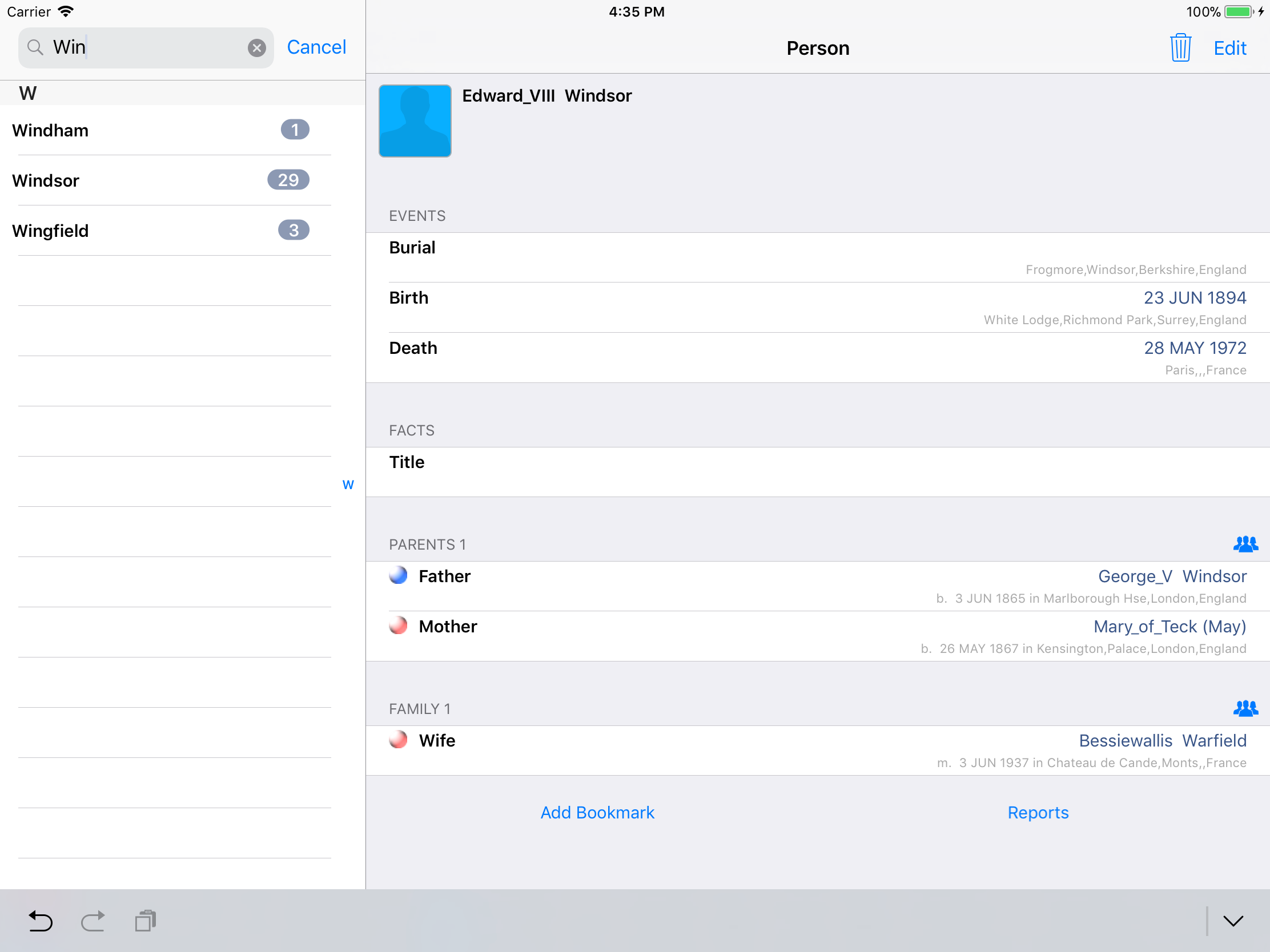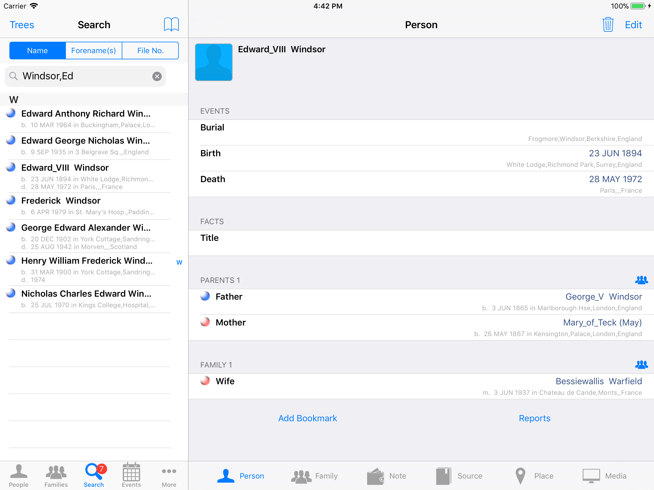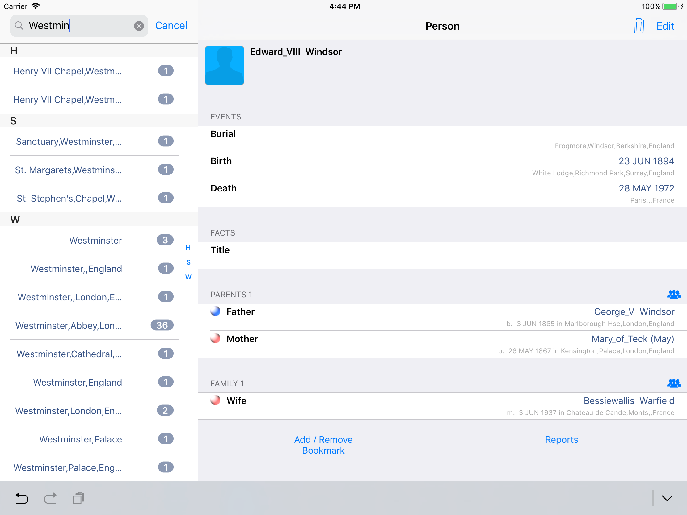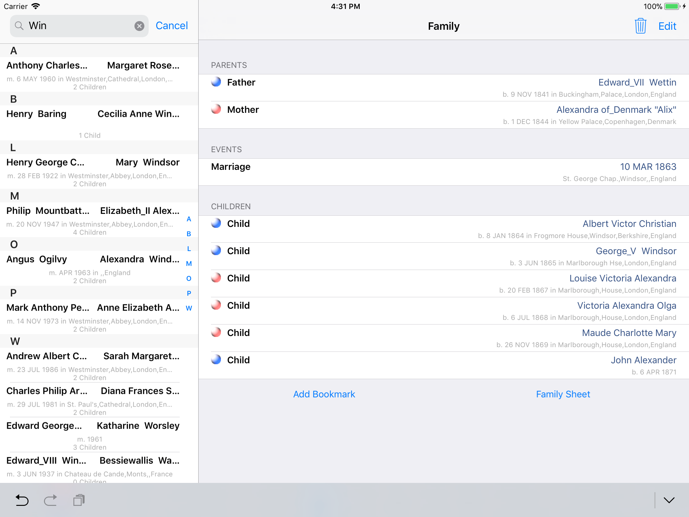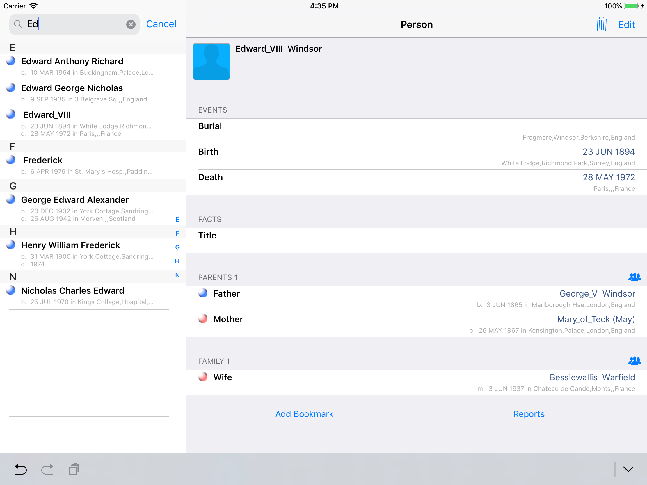iPhone, iPod, iPad Genealogy Viewer / Editor
