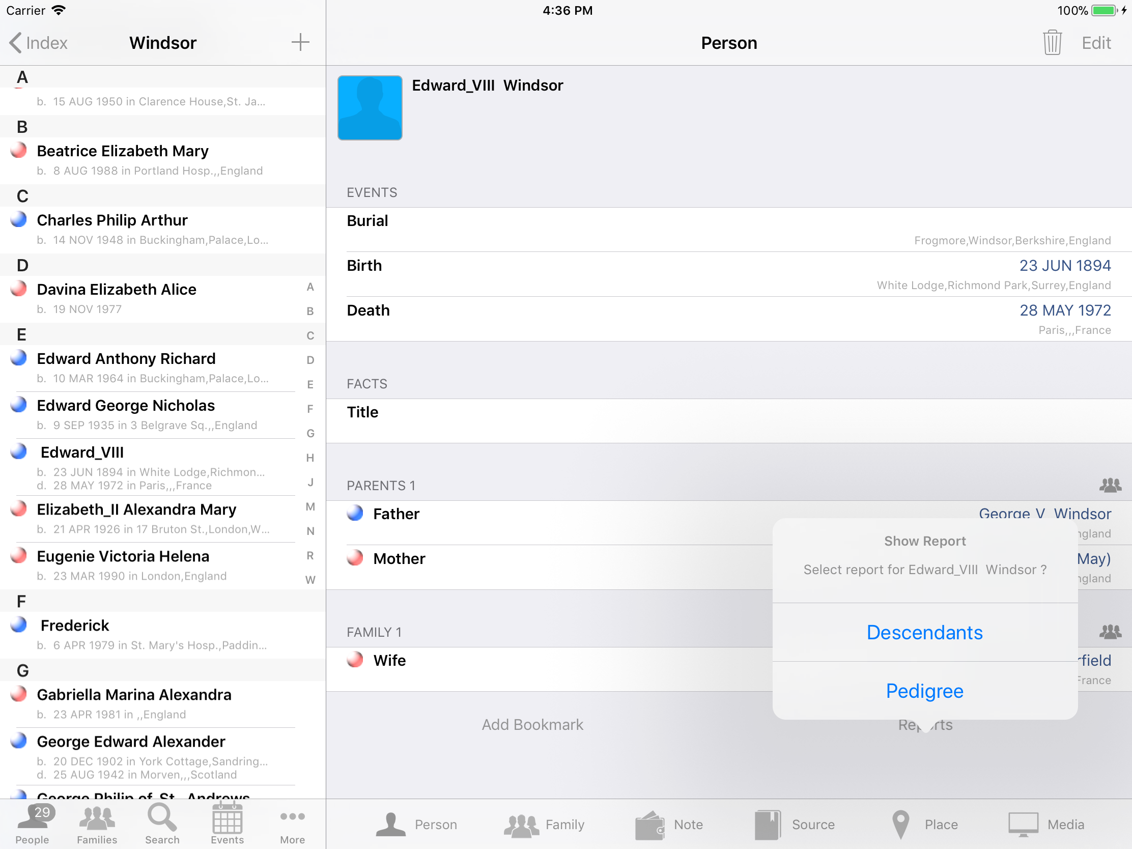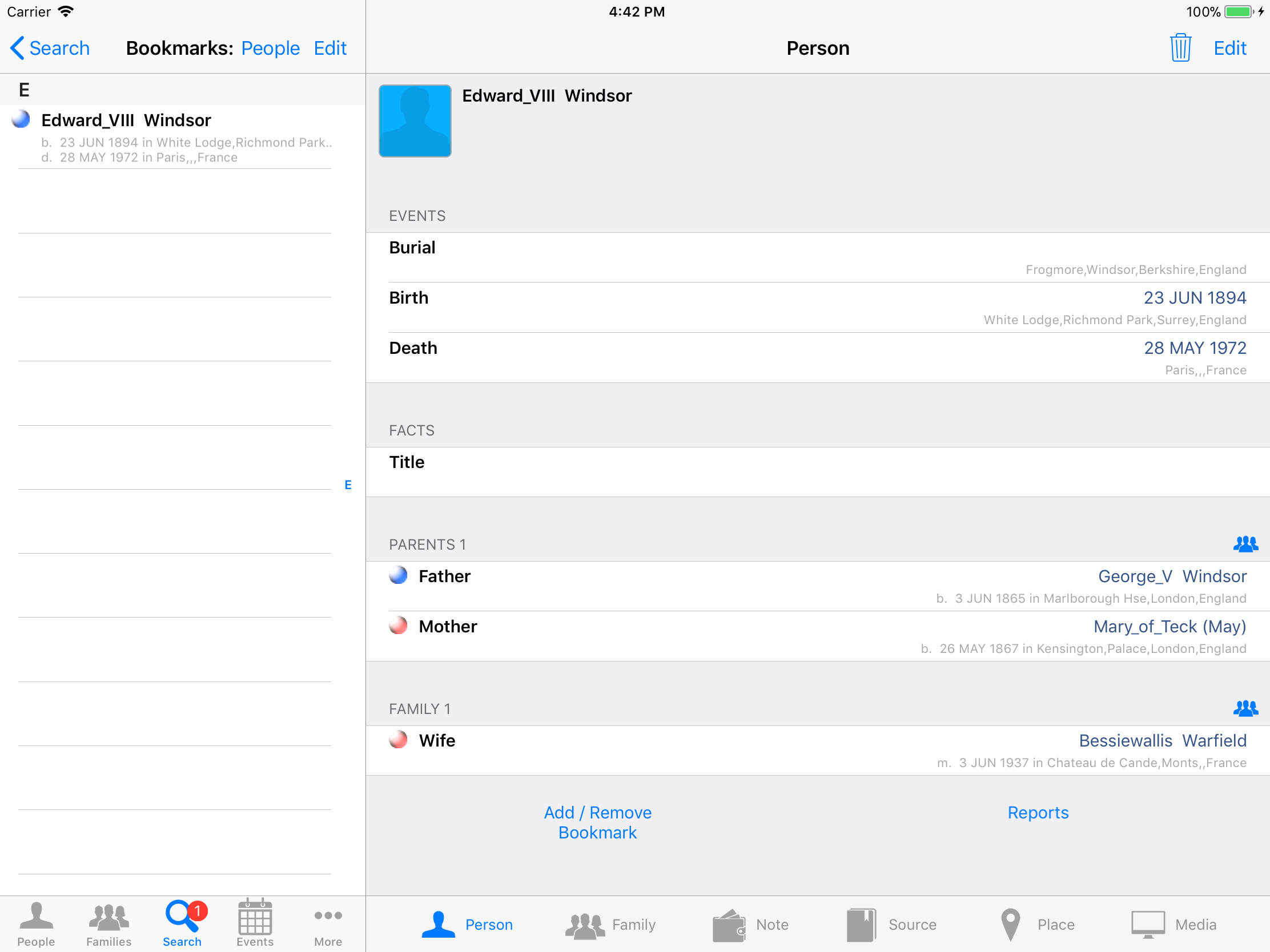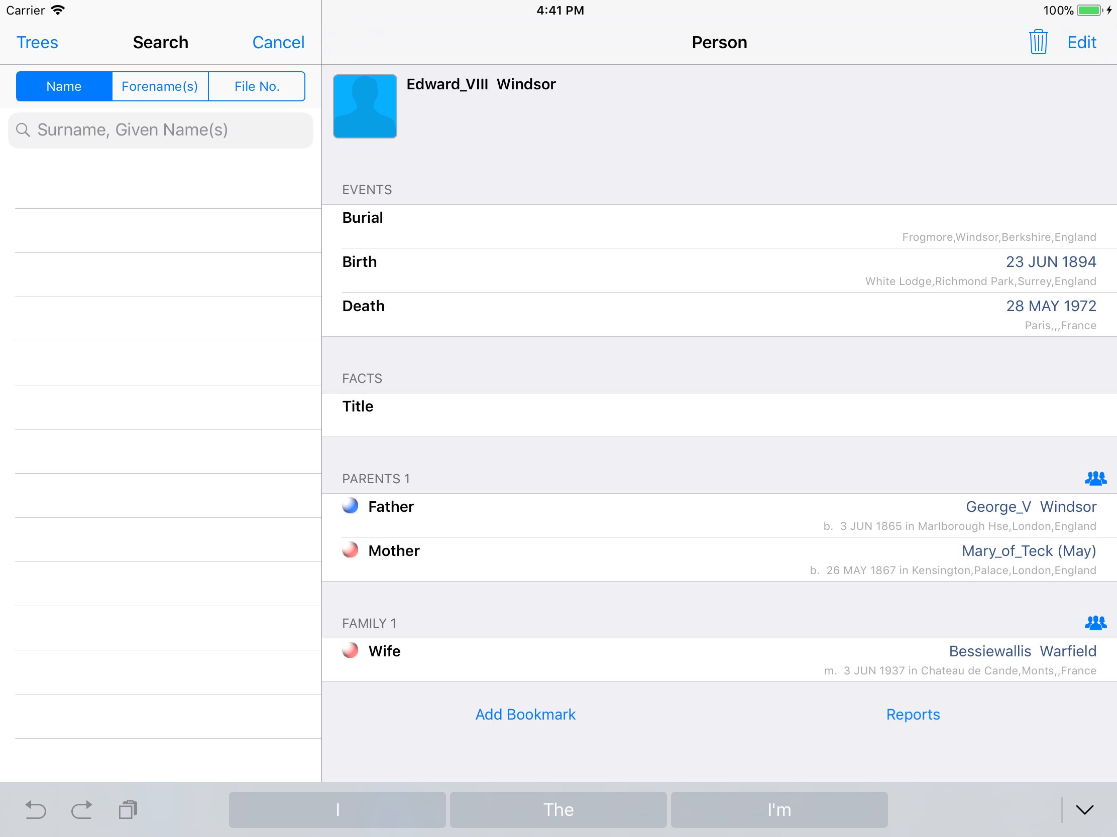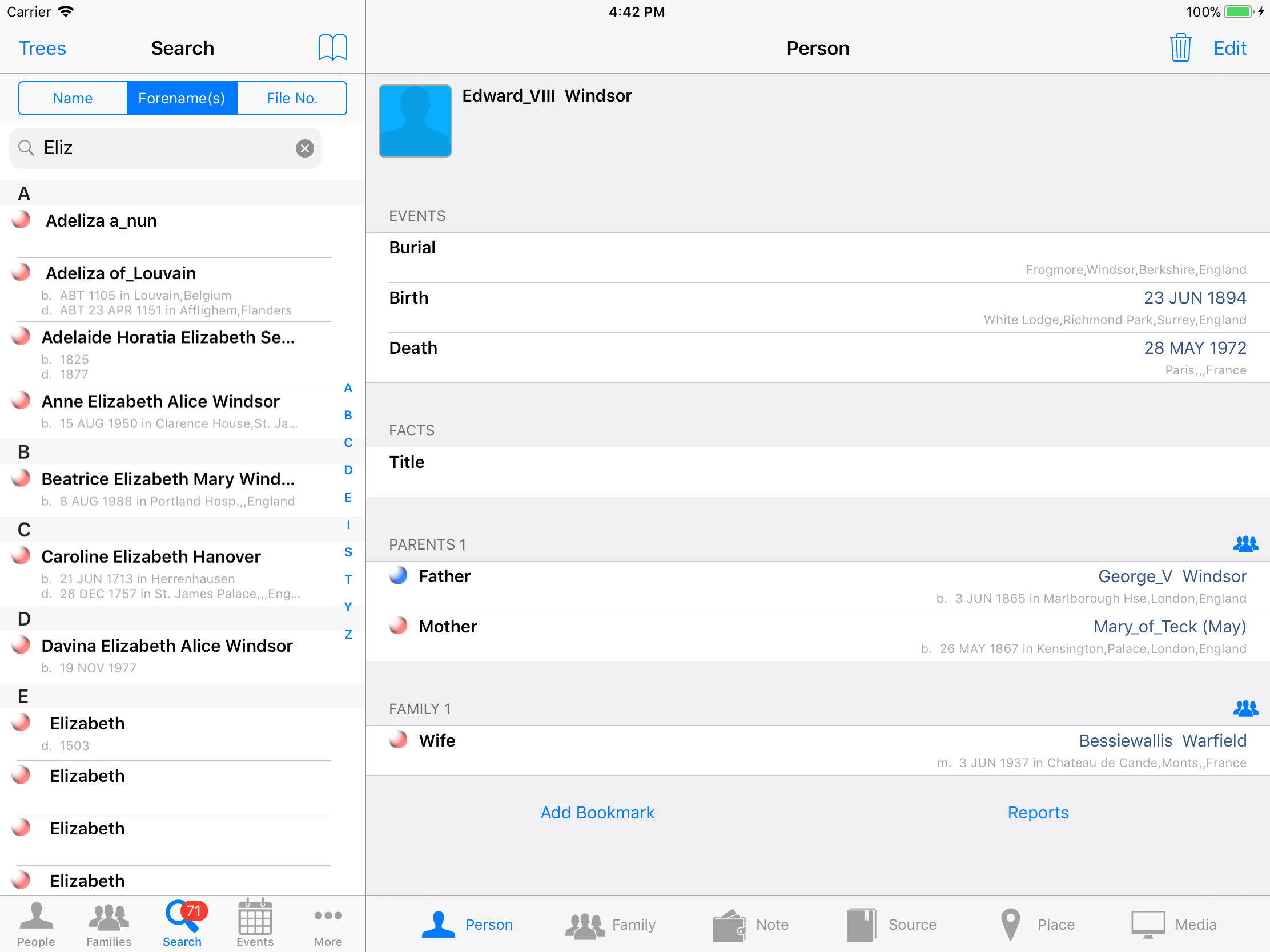 iPhone, iPod, iPad Genealogy Viewer / Editor