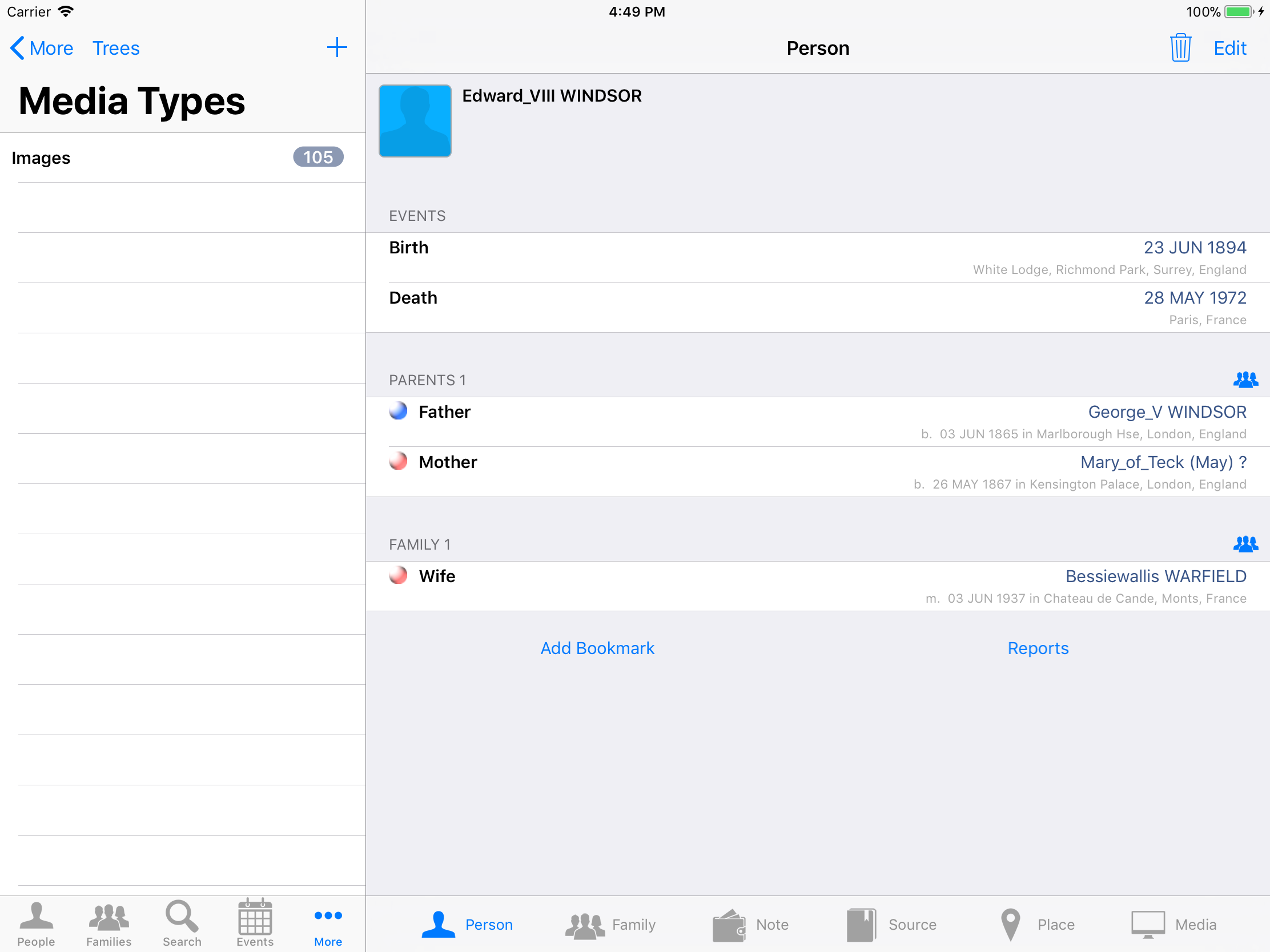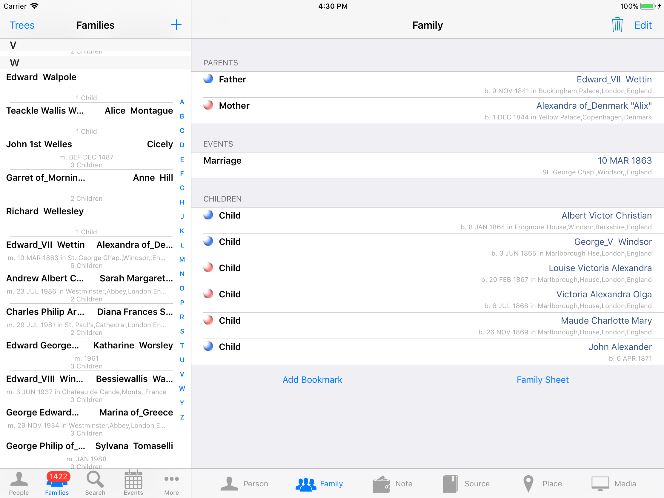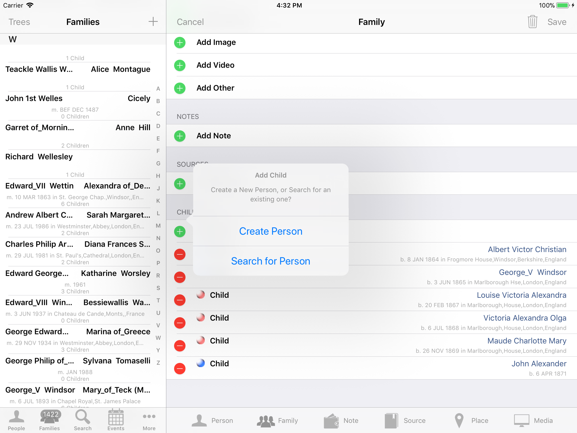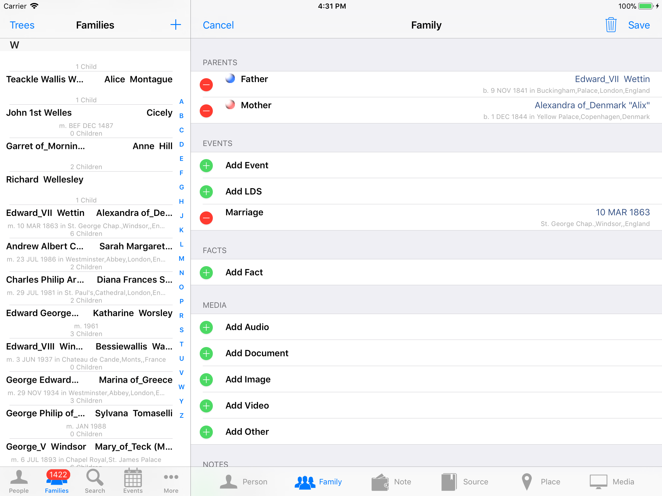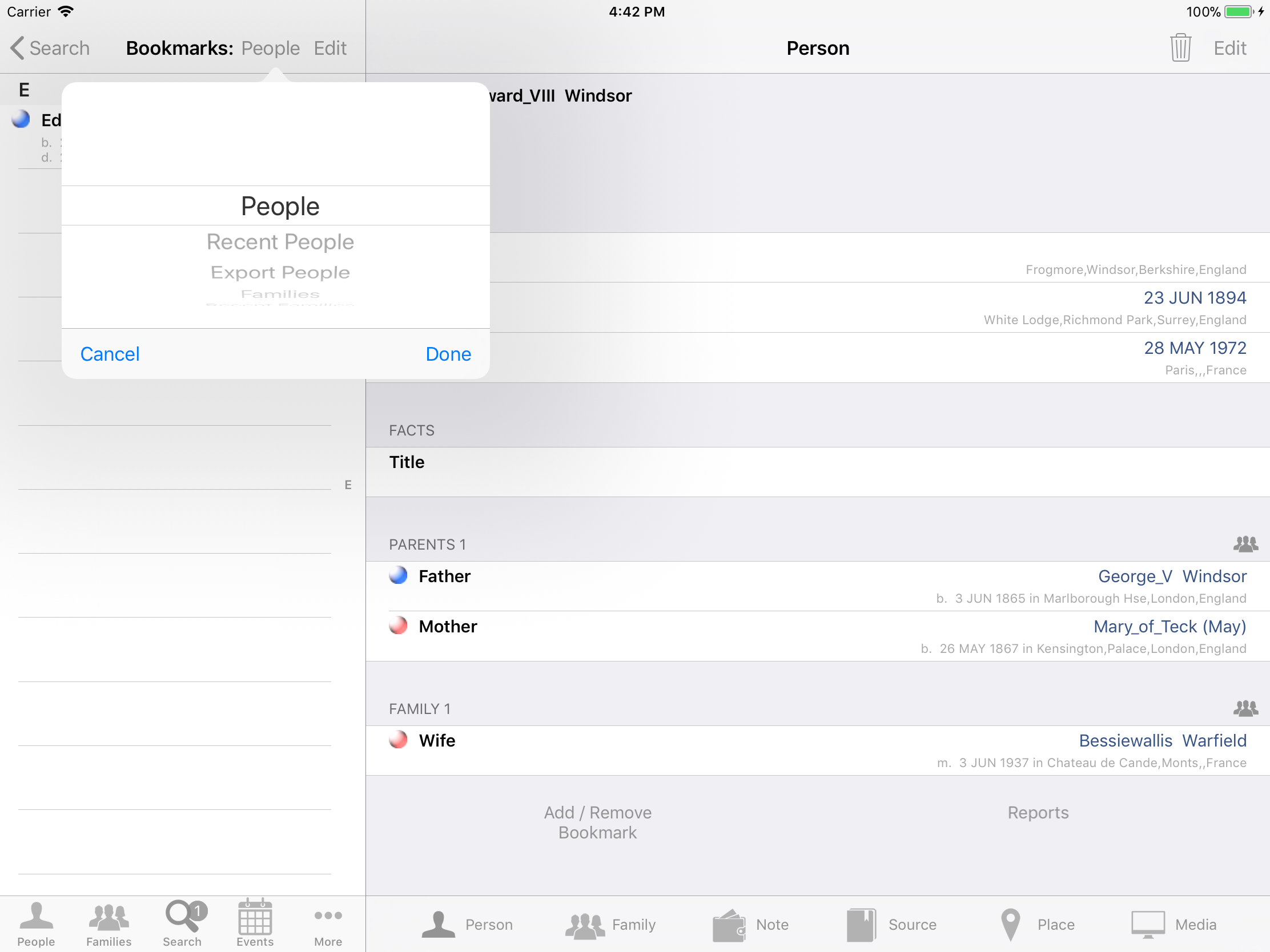 iPhone, iPod, iPad Genealogy Viewer / Editor
