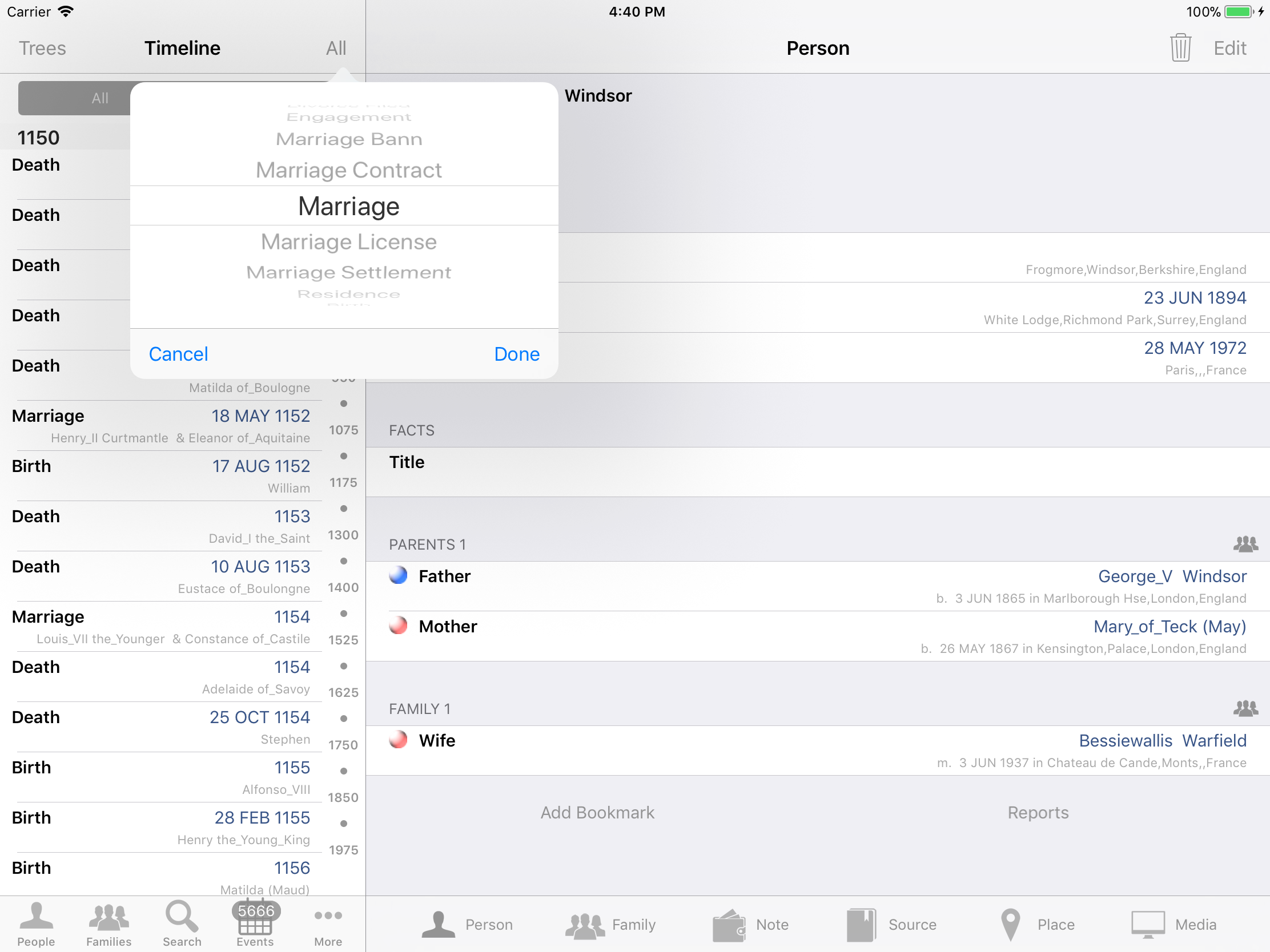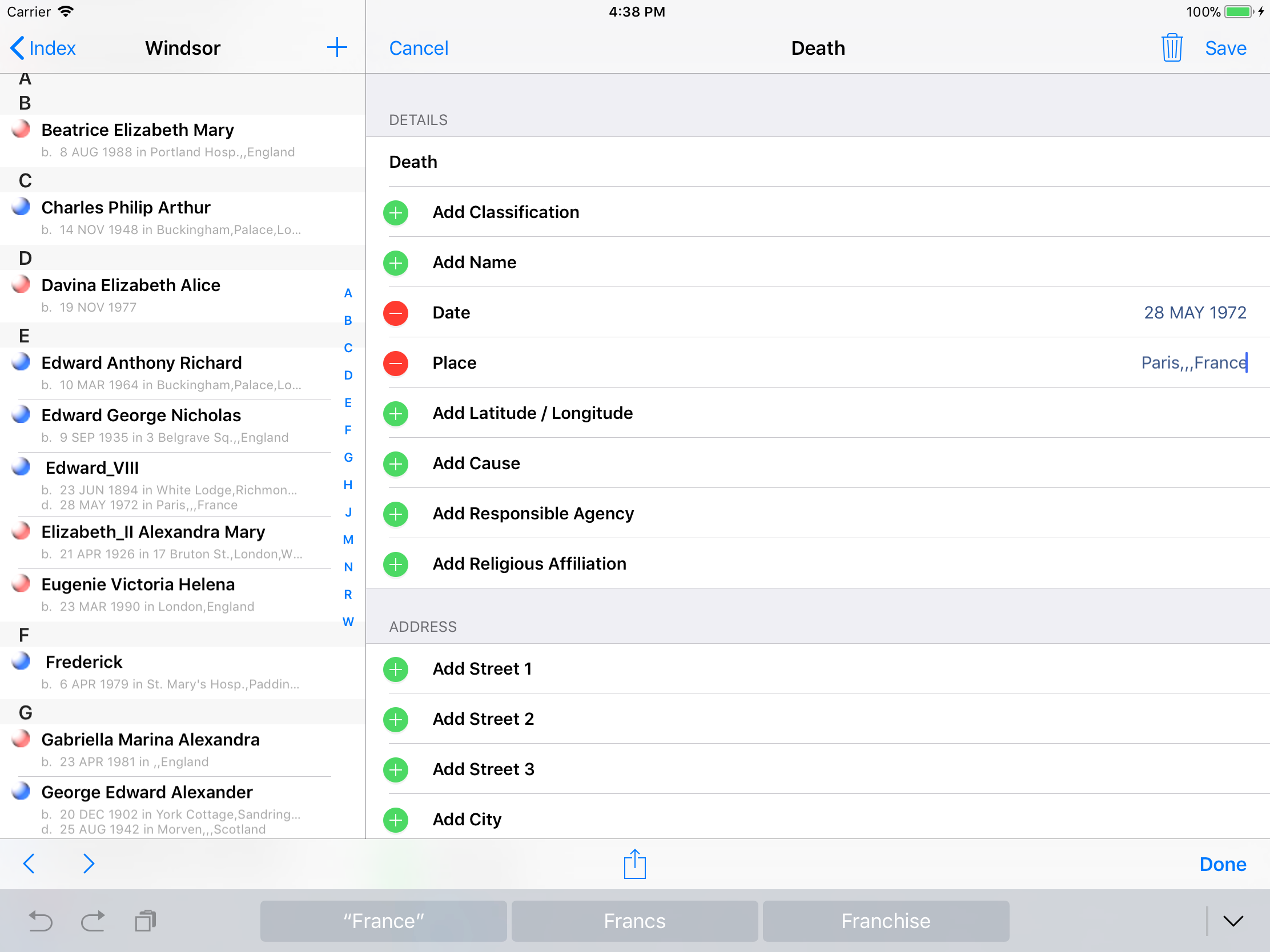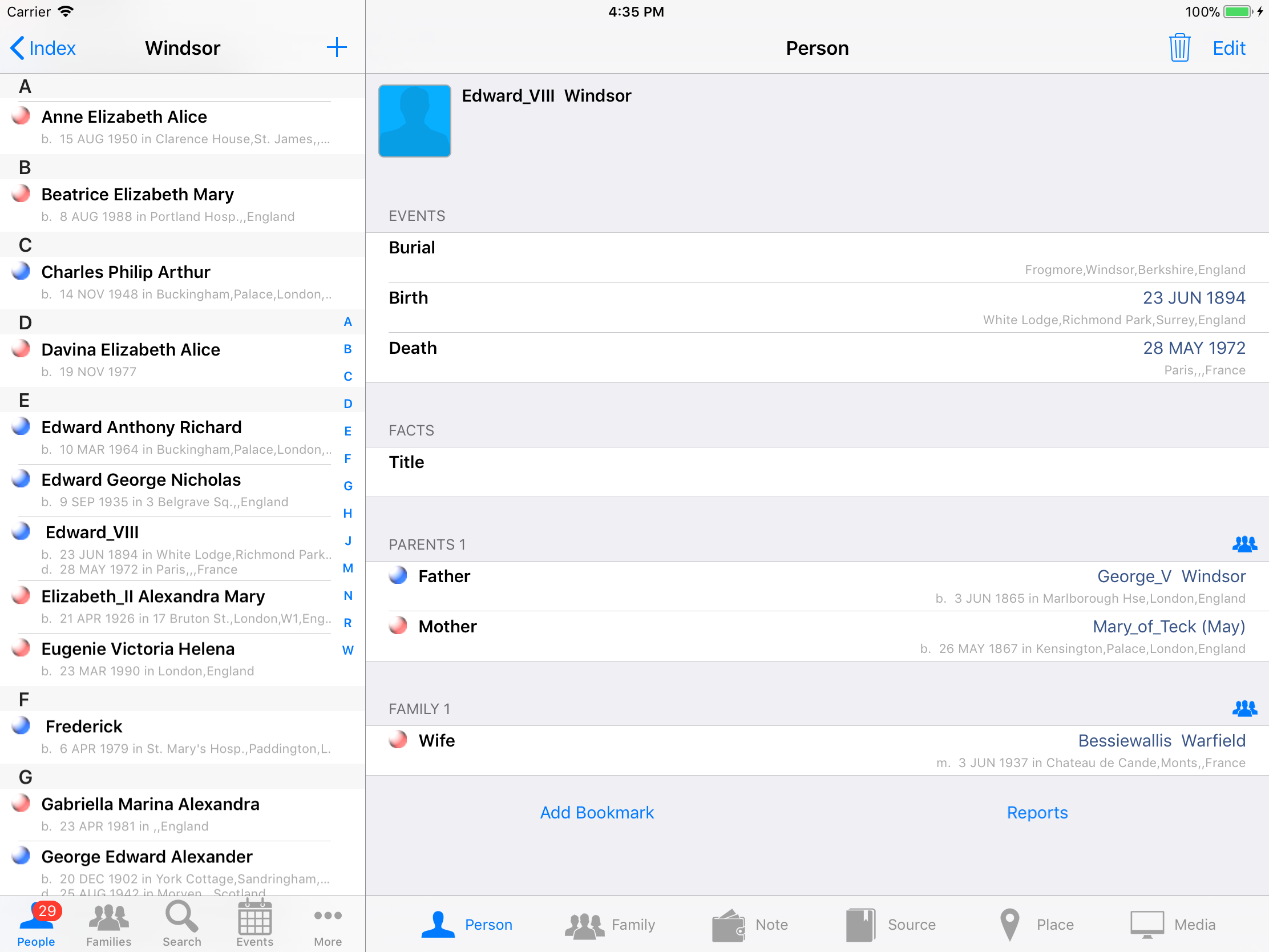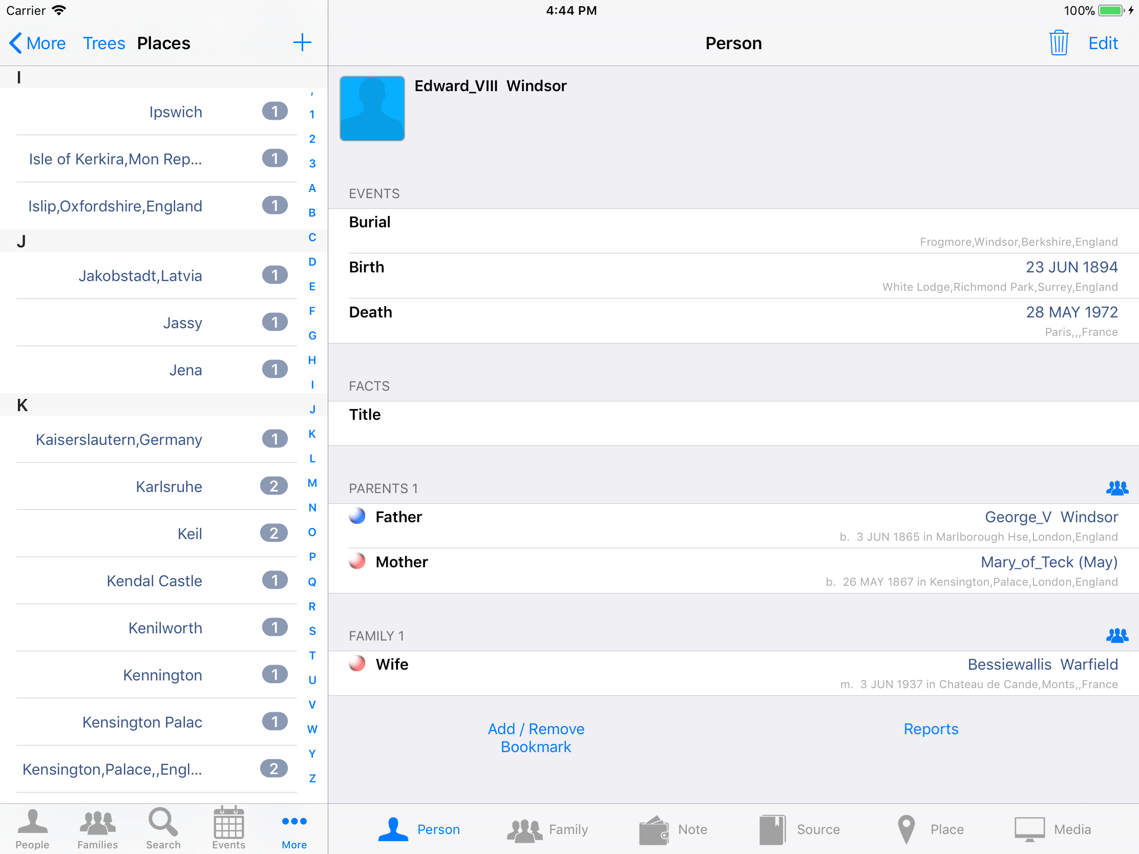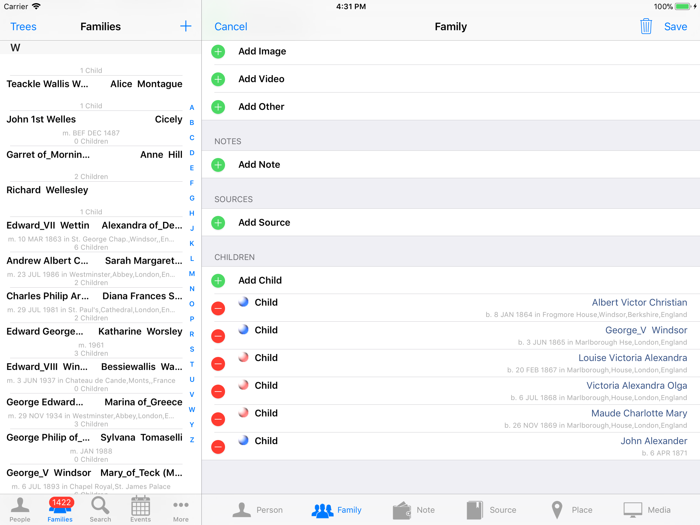 iPhone, iPod, iPad Genealogy Viewer / Editor