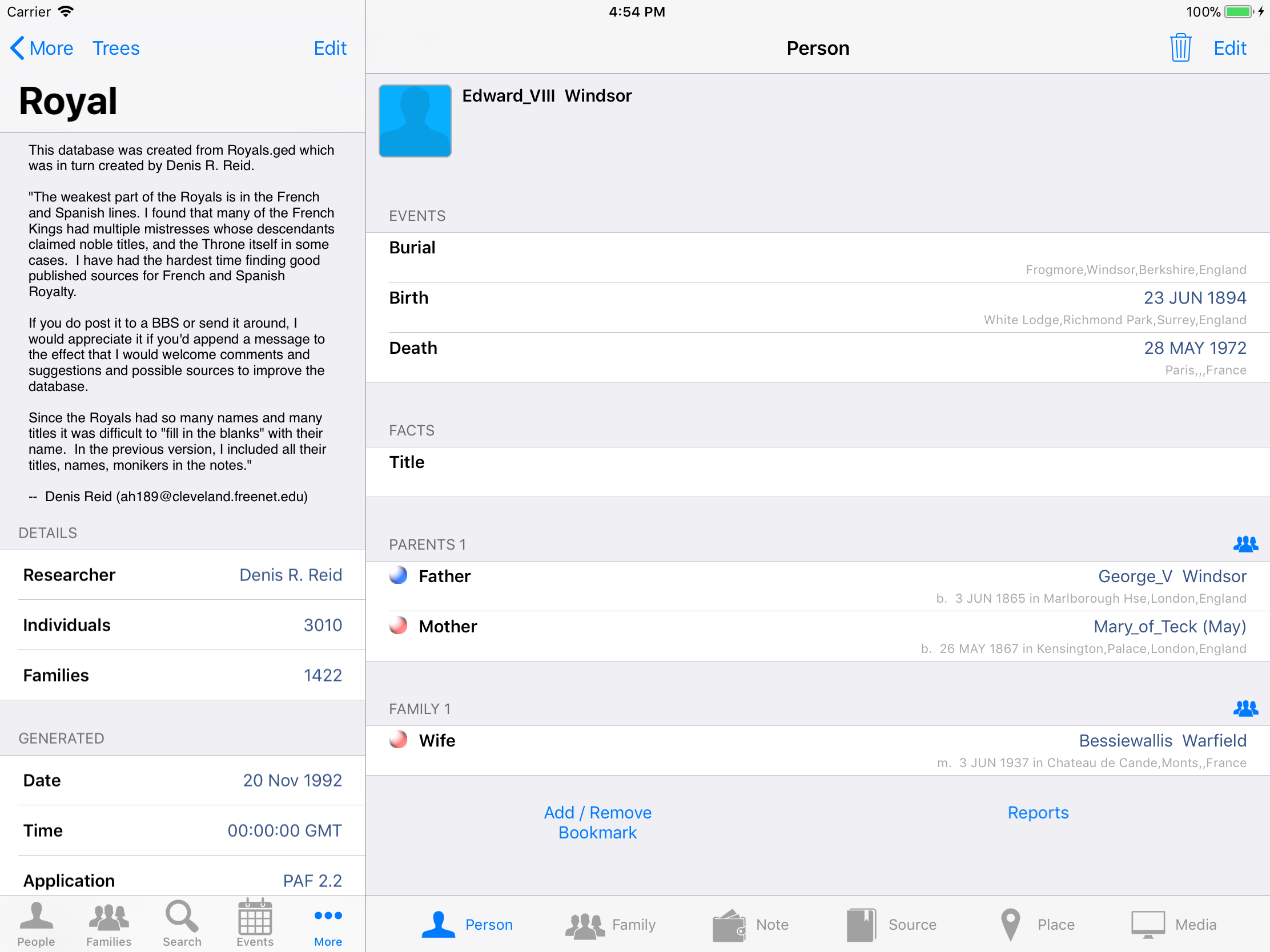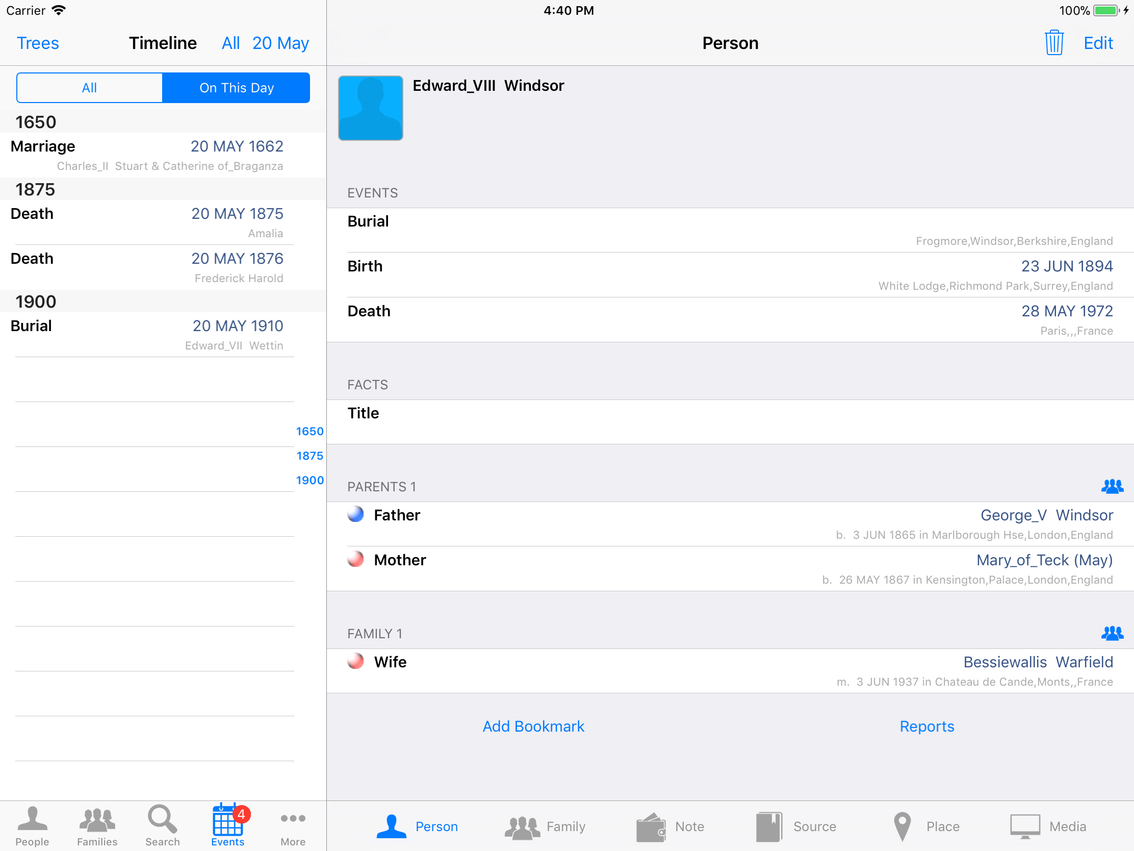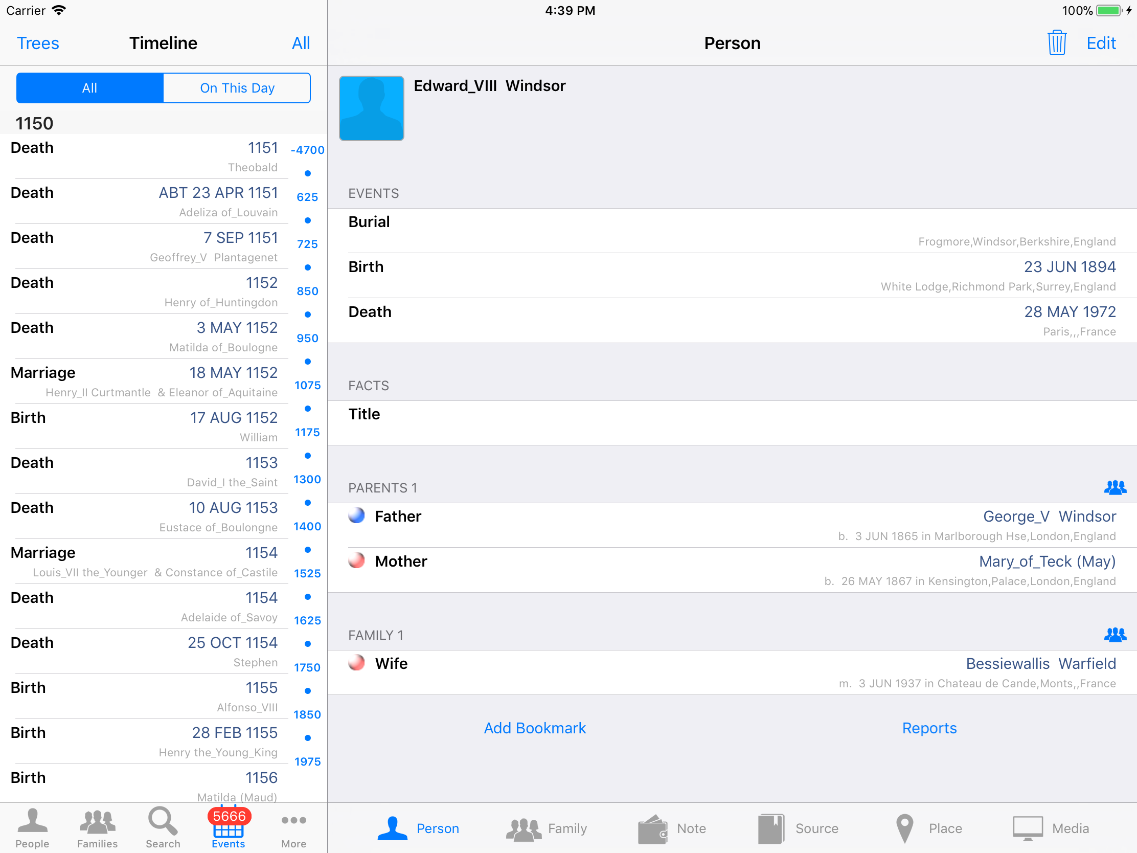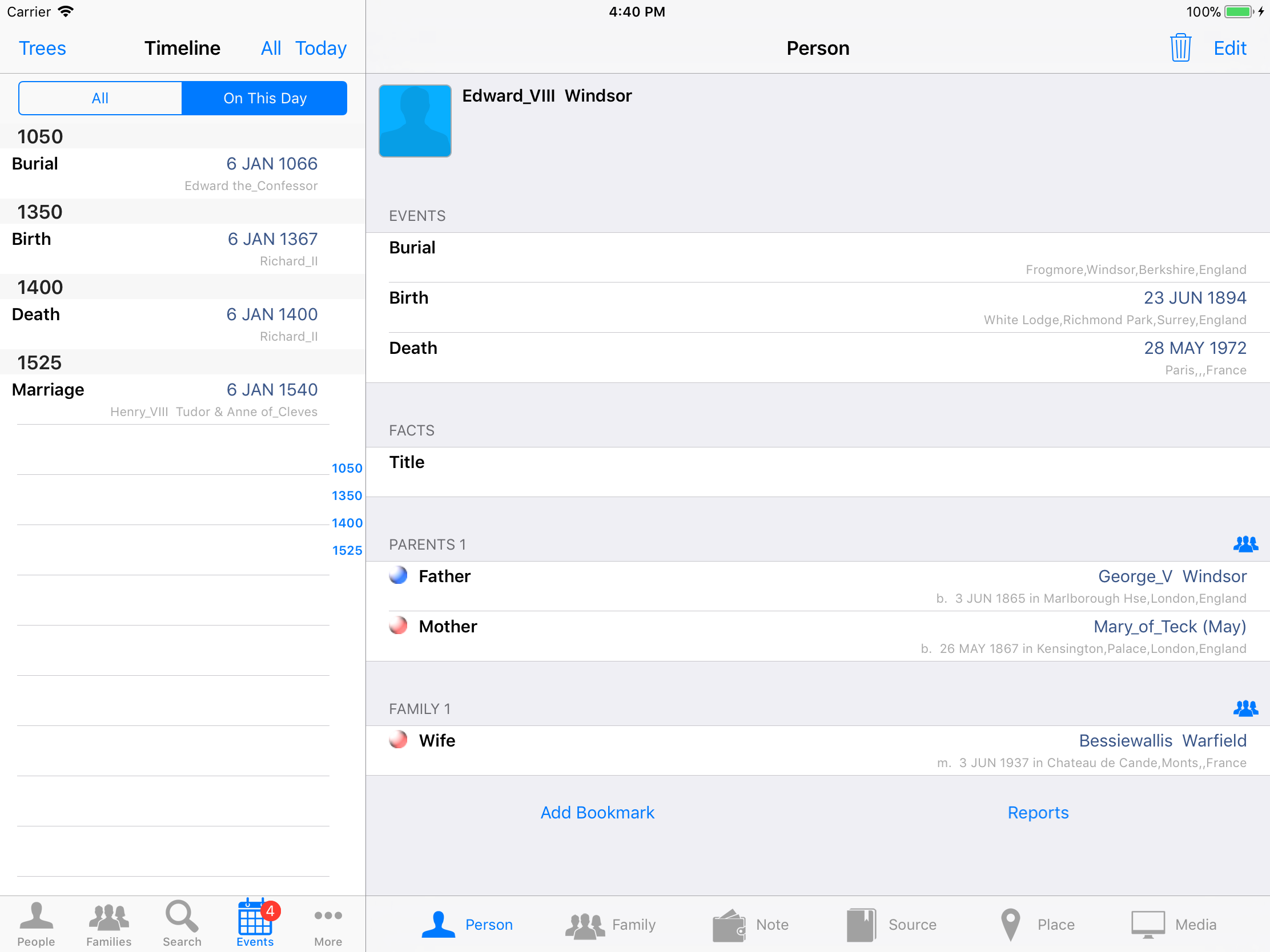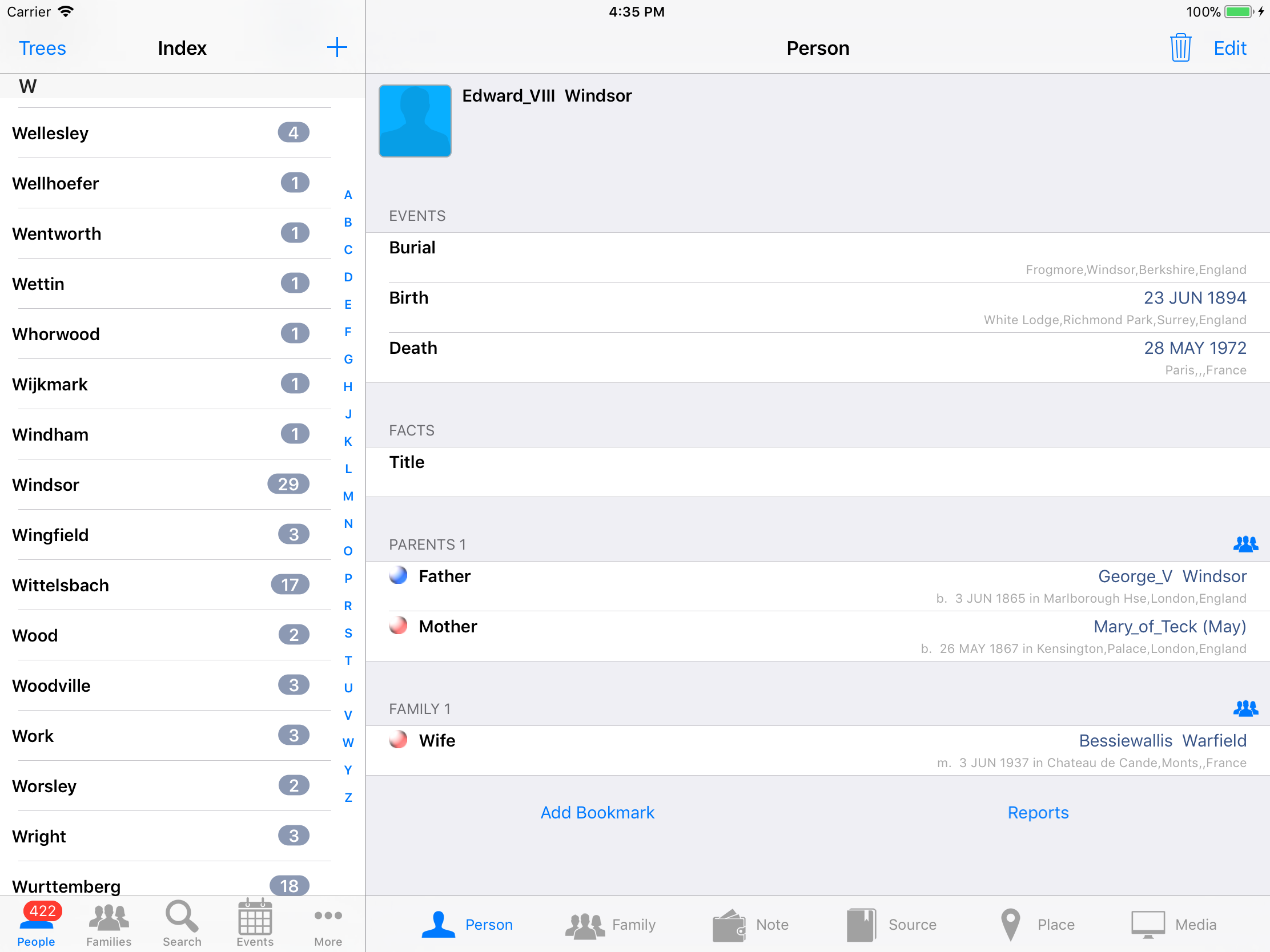 iPhone, iPod, iPad Genealogy Viewer / Editor