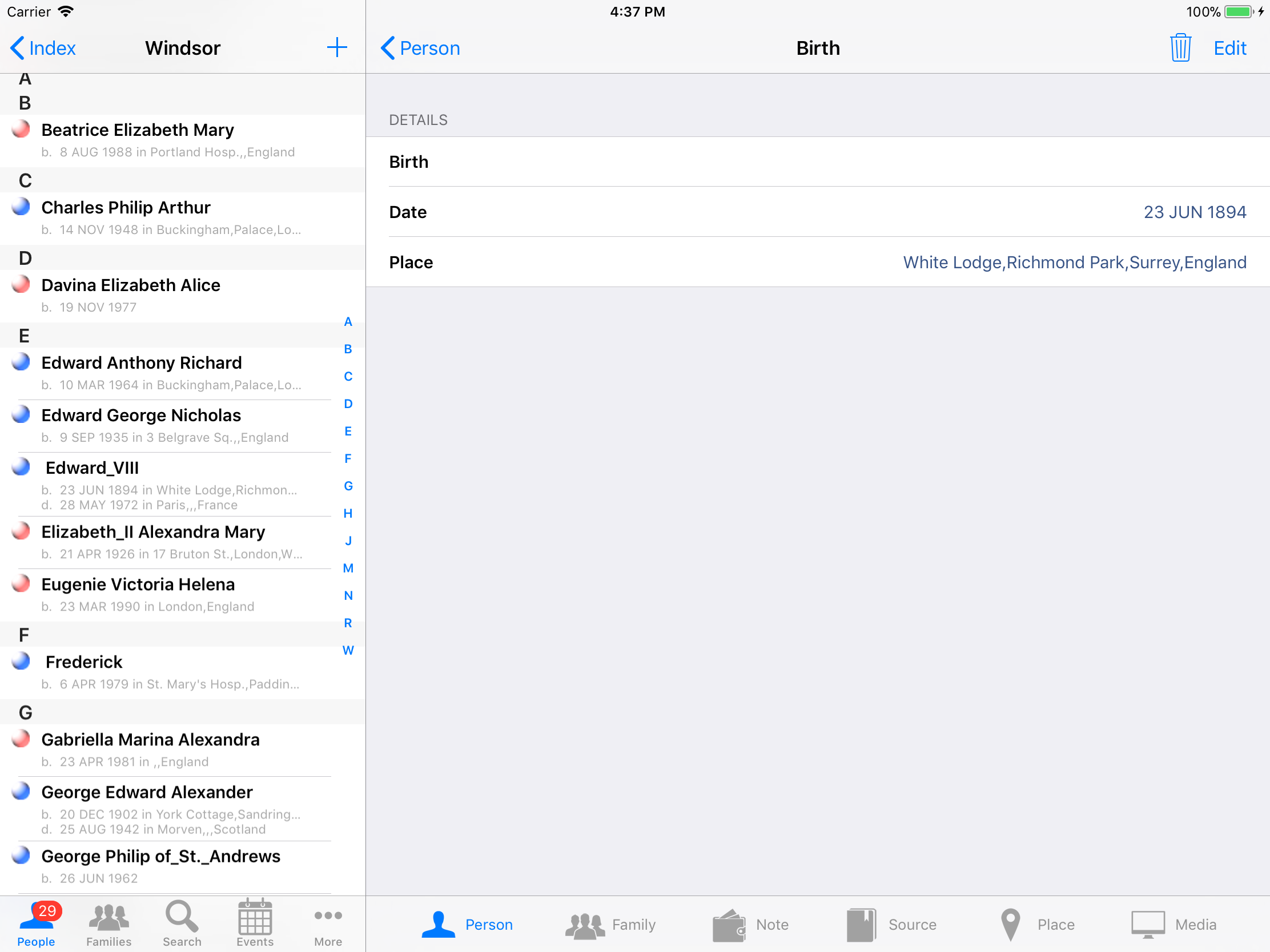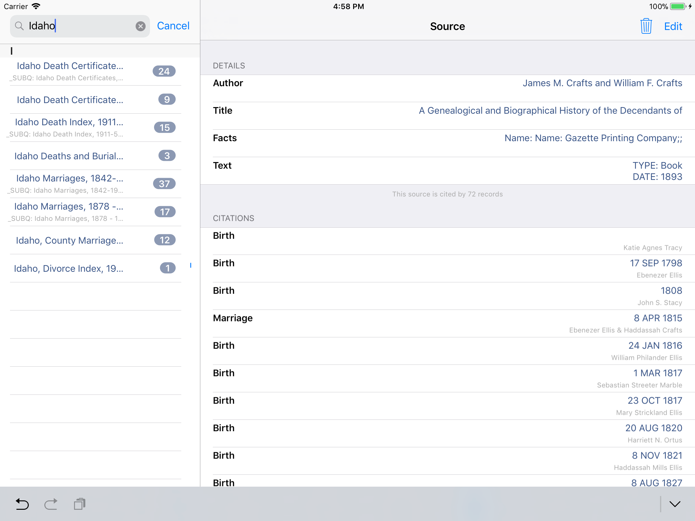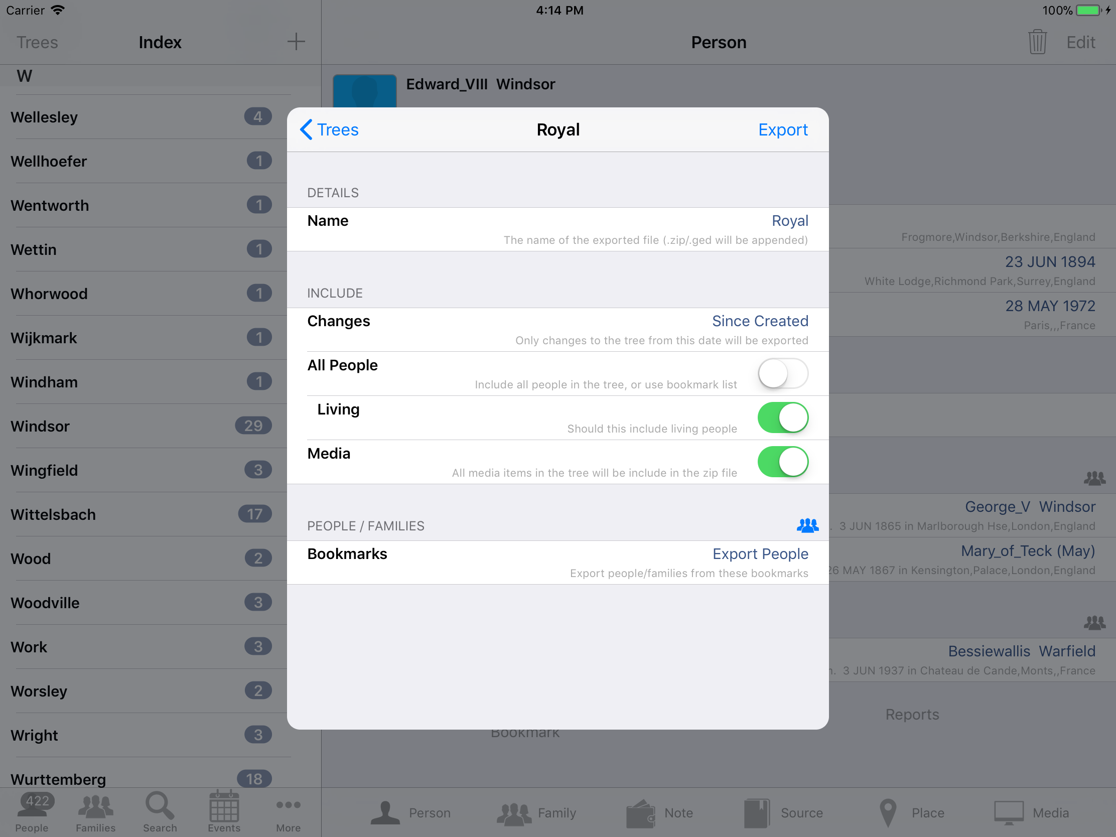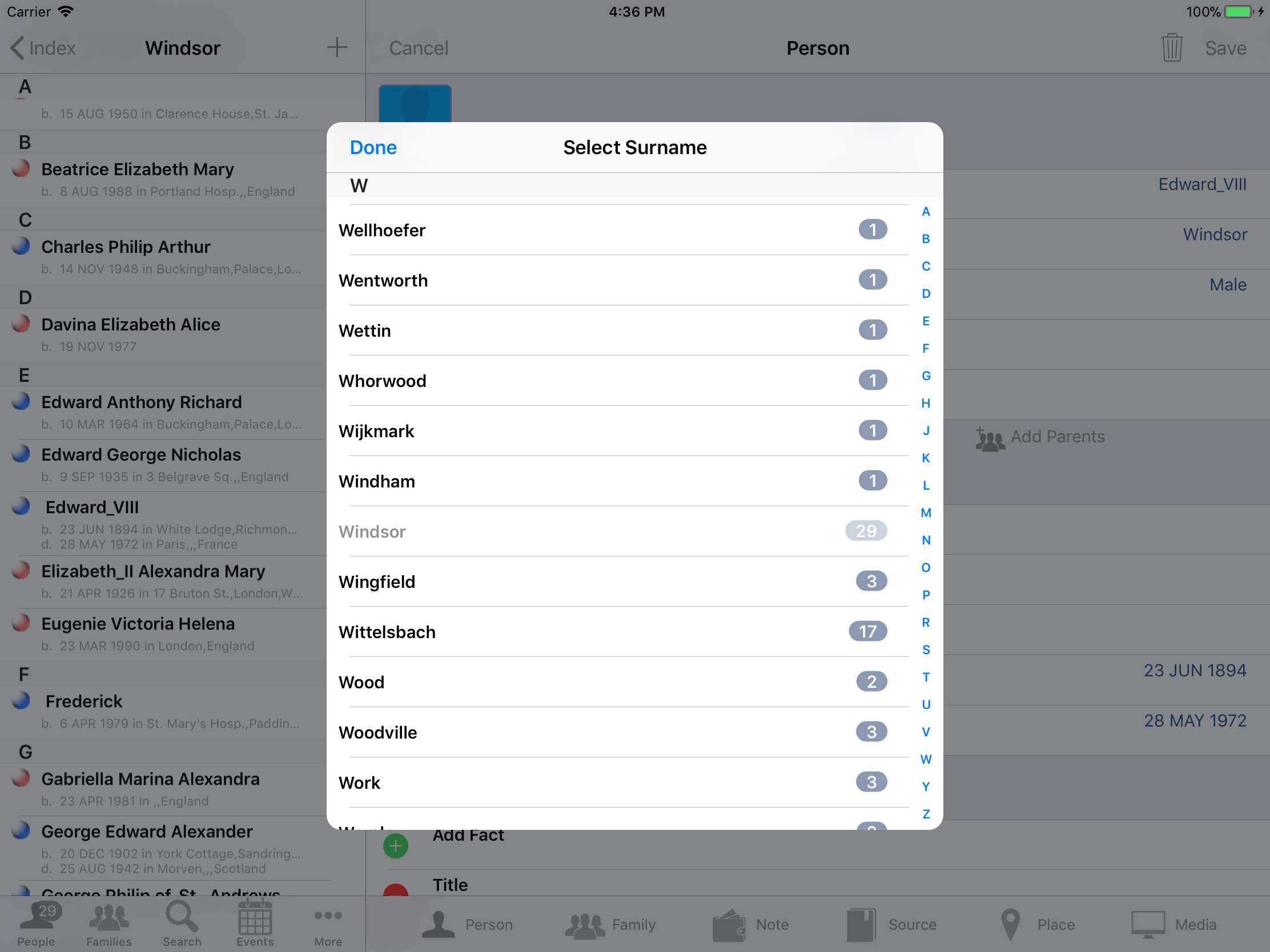 iPhone, iPod, iPad Genealogy Viewer / Editor