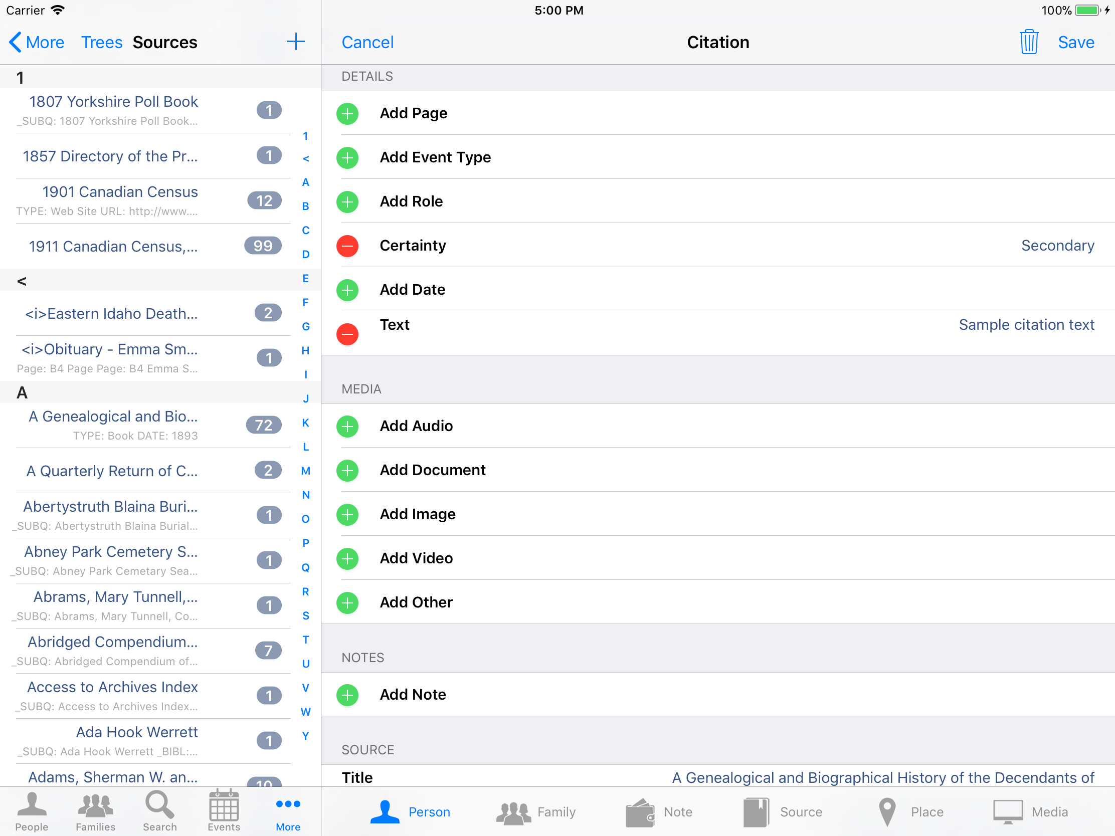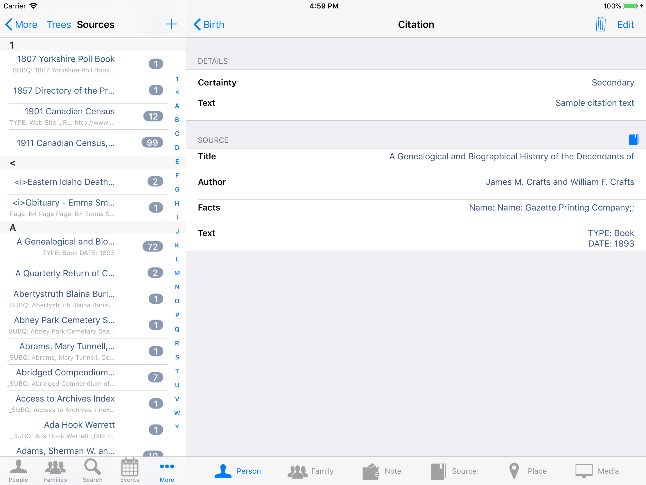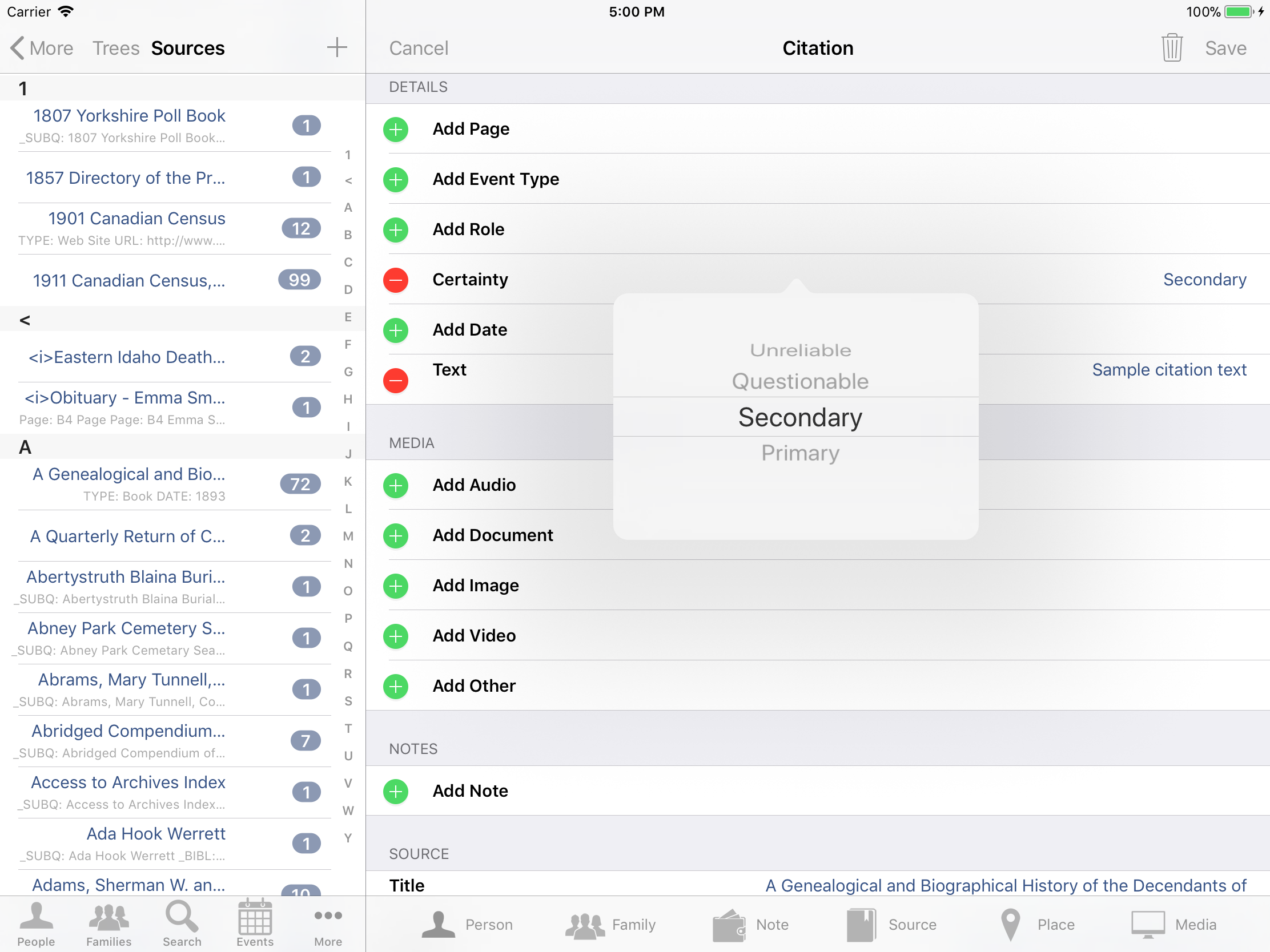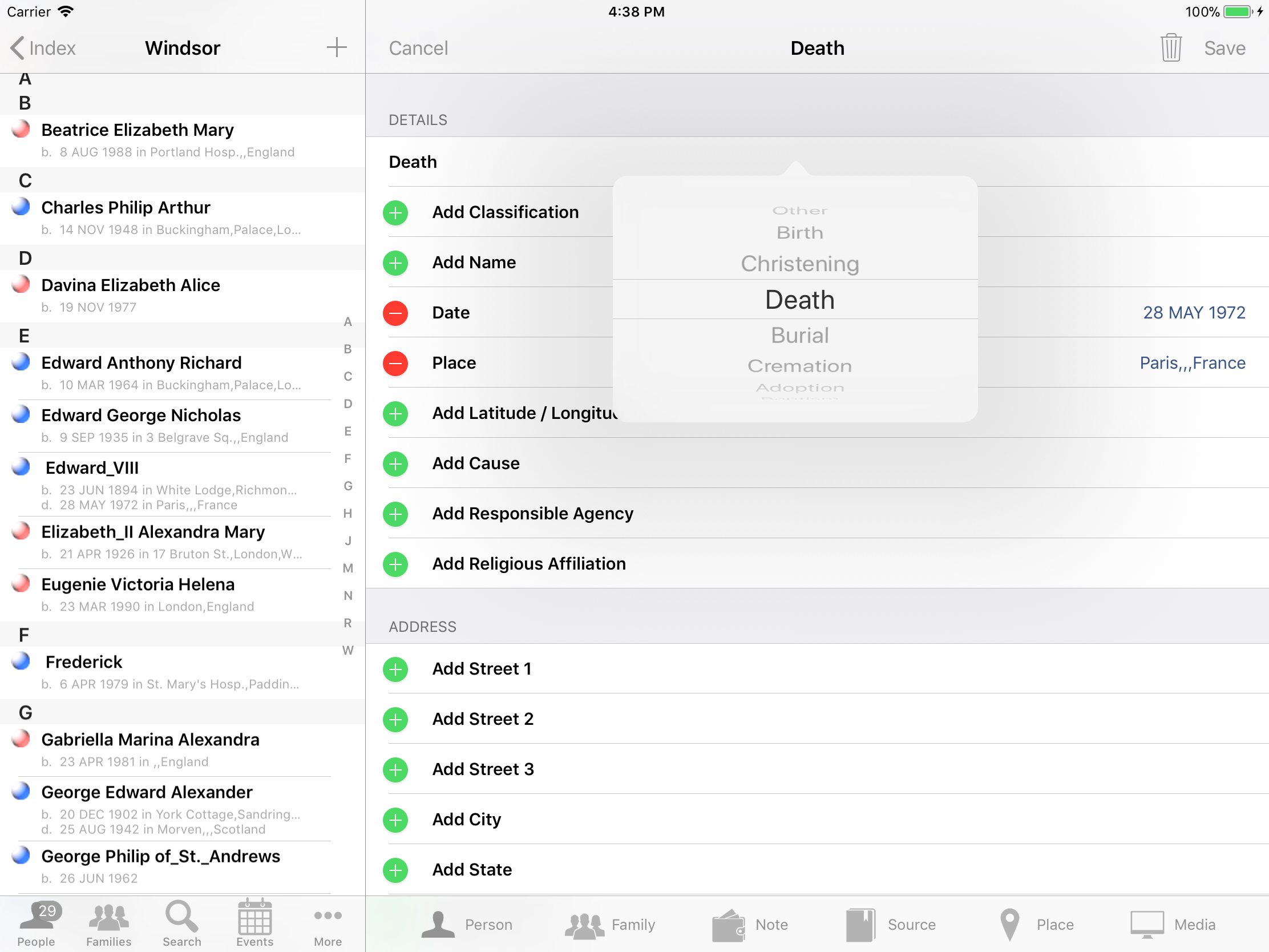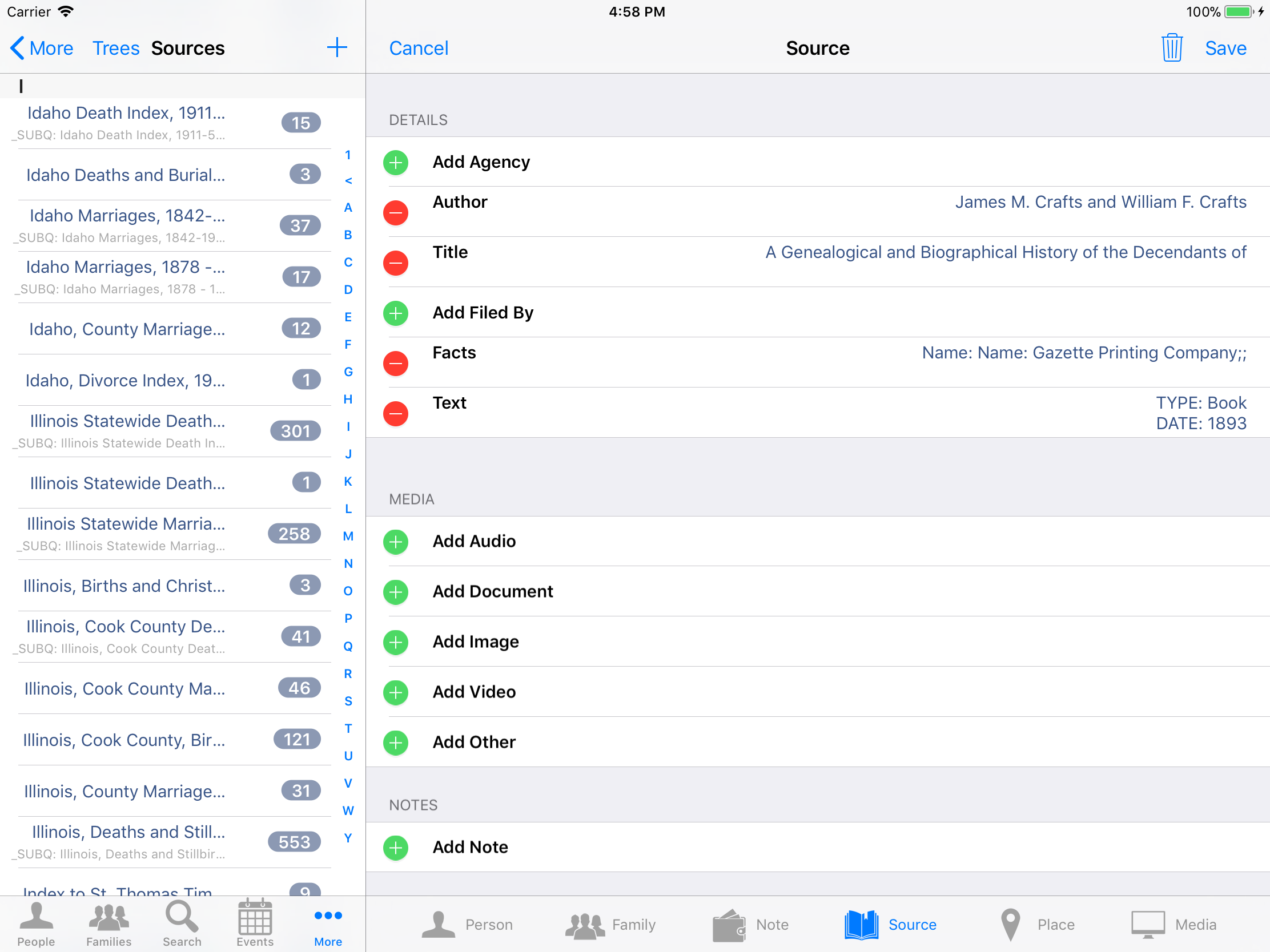 iPhone, iPod, iPad Genealogy Viewer / Editor